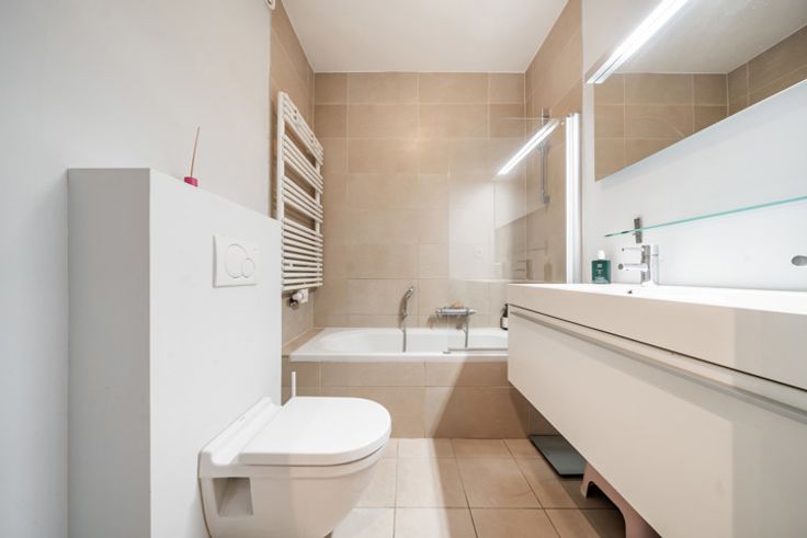 Lamarche Properties vous présente un magnifique appartement 2 chambres (80m² PEB) avec terrasse de 10m² et emplacement de parking, situé dans le quartier prisé du Châtelain. Cet lumineux appartement (2ème étage) dispose d’une cuisine américaine haut de gamme de marque Bulthaup, équipée d’un bar petit-déjeuner et d’appareils électroménagers SMEG (taque vitrocéramique, four inox, frigo avec congélateur, lave-vaisselle et hotte). La salle de bain comprend une baignoire, un double lavabo avec grand miroir, un radiateur sèche-serviettes et un WC, auxquels s’ajoute une seconde toilette séparée pour plus de confort. Le séjour, les chambres et le hall sont habillés d’un parquet en chêne massif verni, tandis que les pièces d’eau sont dotées d’un carrelage Villeroy & Boch. Les châssis en bois avec double vitrage à l’avant et en aluminium à l’arrière assurent une excellente isolation. Le bâtiment offre également un local vélo et un espace pour les sacs poubelles. Situé dans le quartier du Châtelain, un véritable joyau de la ville, cet appartement bénéficie d’une atmosphère conviviale et cosmopolite, à proximité du marché du Châtelain (mercredi), des trams, bus et métro, ainsi que de nombreux restaurants et commerces de luxe. Une opportunité rare dans un cadre exceptionnel. Contactez moi dès maintenant pour une visite !