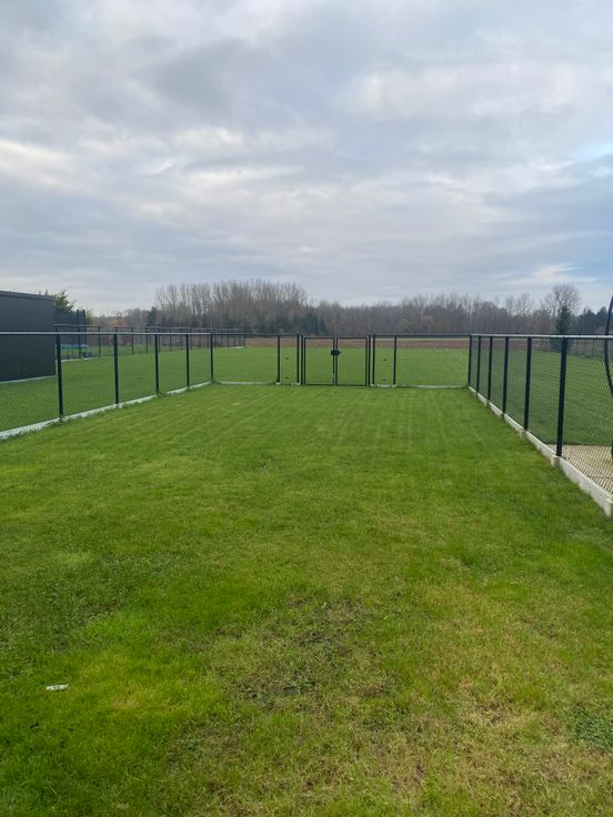 De tuin heeft een prachtig zicht op de velden, heeft een diepte van ongeveer 20m en is volledig omheind. Aansluitend aan de achtergevel ligt een aangelegd terras van +/- 40m². Vooraan heeft de woning nog een ruime oprit.
