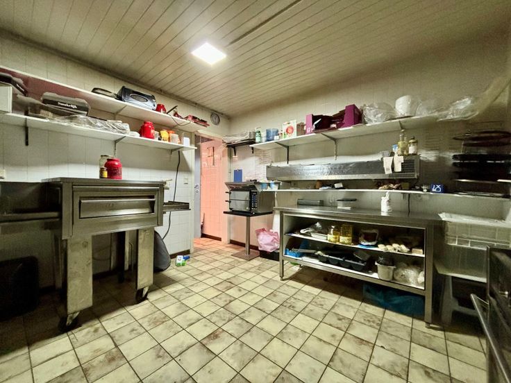 Het pand werd voorheen gebruikt als pizzeria, maar biedt tal van mogelijkheden voor andere commerciële doeleinden. De handelsruimte omvat een ruime eetzaal, een volledig uitgeruste keuken, opslagruimtes, een koelcel en moderne sanitaire voorzieningen. Bovendien is er een kelder die extra stockagemogelijkheden biedt.