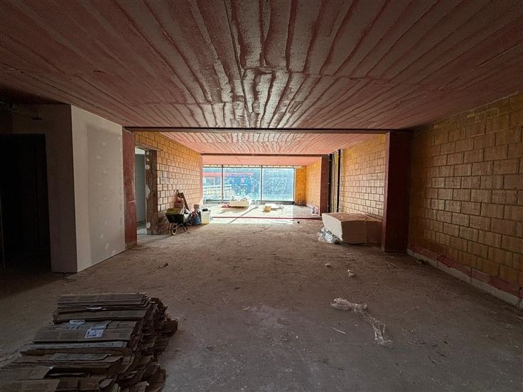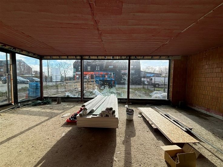 De royale beglazing aan de voorzijde dompelt de binnenruimte onder in natuurlijk licht, wat zorgt voor een aangename werkomgeving. Het interieur is momenteel in opbouw, wat de unieke mogelijkheid biedt om de indeling en afwerking volledig af te stemmen op uw specifieke behoeften en stijlvoorkeuren.