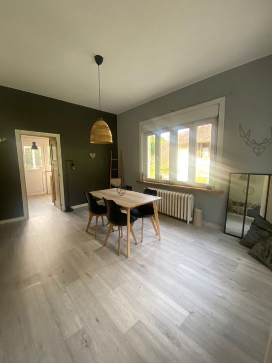 Cette jolie maison de 100m² sur un terrain de 4are 38ca proche de toutes facilités (transports en communs, commerces, grands axes...) est composée au rez-de-chaussée d'un living lumineux avec lino de 32,50m², salle de bain, une chambre à coucher de 9m² côté jardin et d'une cuisine de 10,5 m² avec accès directement à une terrasse arrière de 8m², qui mène vers le jardin de 200m².