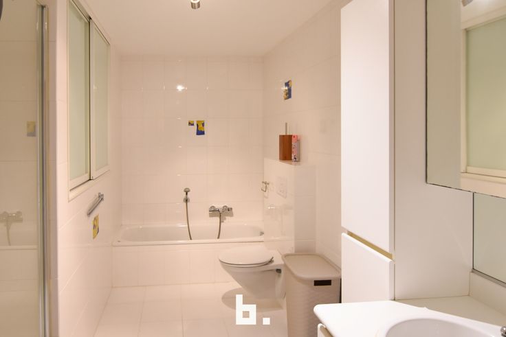badkamer voorzien van een toilet, bad en aparte douche.