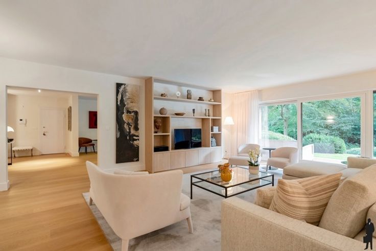 Een hoogwaardig afgewerkt volledig vernieuwd villa-appartement van ca.193 m² met grote terrassen. Gelegen in het groene en residentiële Vriesdonk, in domein Eikendael, Residentie Oxford. Indeling appartement: - Middels veiligheidsdeur naar inkomhal met ingemaakte vestiaire kastenwand in geborstelde eik en gastentoilet met handenwasser - Een ruime eet -en woonkamer, beiden voorzien van een schuifraam met toegang tot terras en prachtig zicht op de parkvijver. Op maat gemaakt tv-meubel in eik . - Een open keuken volledig in Carrara marmer (zowel de vloertegels als het keukenblad). Miele inbouwtoestellen o.a. combi hetelucht/microgolfoven, wijnkoeler, vaatwasser, warmhoudlade, koelkast met diepvriezer combinatie, alsook een Bora inductiekookvuur met dampkap - Een aansluitende berging met ingemaakte kasten en aansluiting wasapparatuur - Een hoofdslaapkamer met prachtige dressing met eiland in roze marmer, tweede separate inloopdressing. - Aansluitende hoofddouchekamer (in Carrara marmer) met inloopdouche, Japans toilet, dubbele lavabo en handdoekradiator. Eveneens toegang tot terras aan de voorzijde. - Middels stalen deur (Steeldreams) naar tweede slaapkamer, heden in gebruik als bureau met ingemaakte kastenwand en bureau (volledig in eik), eigen douchekamer, voorzien van inloopdouche in marmer, lavabo, toilet en handdoekradiator. Toegang tot het terras aan de voorzijde. Algemeen: - Het appartement is volledig gerenoveerd (2023)= instapklaar - Vernieuwde elektriciteit welk