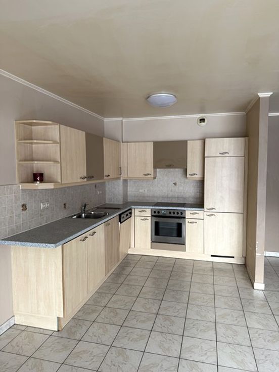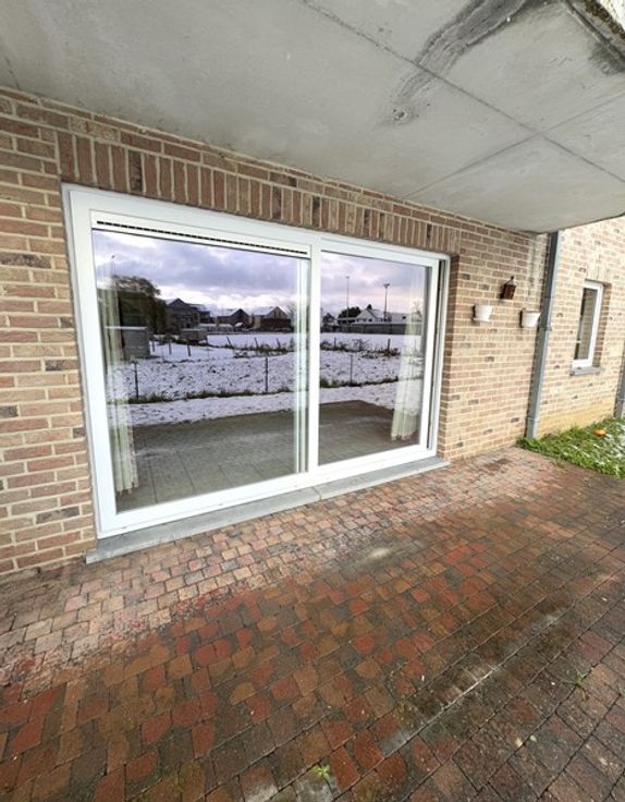 95m² surface plancher chauffé : hall avec vestiaire, spacieux & lumineux living de 43m² ! avec cuisine équipée ouverte, terrasse avec pelouse exposition SUD !, buanderie, sdb, wc séparé et 2 chambres de +/- 11 & 15m².