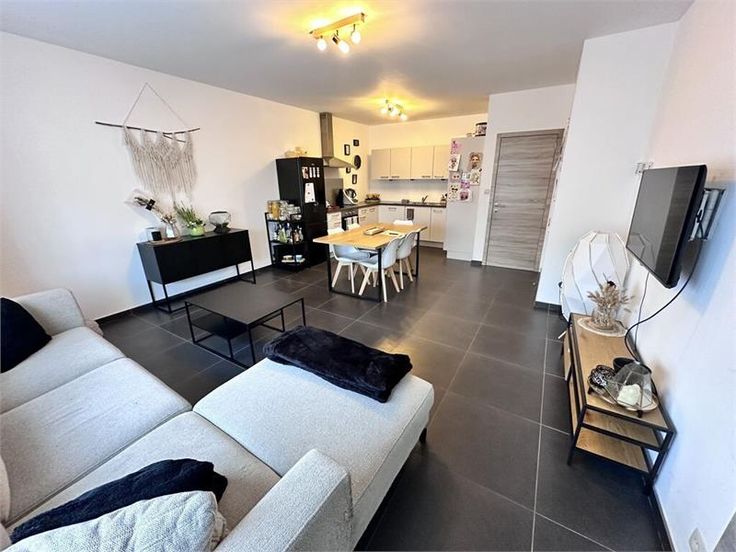 Très bel appartement idéalement situé proche des grands axes routiers et autoroutiers. Lappartement au rez de chaussée dun immeuble récent se compose comme suit; Un living spacieux et lumineux, dune buanderie, de deux belles chambres, dune salle de bains (douche, wc et lavabo) et dune cuisine super-équipée (hotte, taques, four, réfrigérateur avec petit espace congélateur, lave-vaisselle et de meubles de rangements,..) Divers: double vitrage PVC, volets, C.C. par le sol, carrelage, vidéophone, 2 places de parking, terrasse... PEB label B 121 kWh/m2.an (n°20180911502362) Loyer : 750 euros + 55euro de charges communes comprenant lentretien de la chaudière. Libre début Juillet (date à convenir) Annonce non contractuelle, ne constituant pas une offre. Les informations sont données à titre informatif. Besoin d'une estimation, d'un conseil? N'hésitez pas à nous contacter au 065/377777 ou par mail à l'adresse info@century21amadeus.be pour une estimation gratuite et sans engagement! Renovatieplicht: onbekend