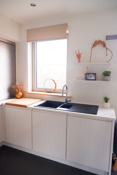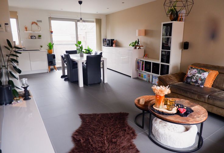 1ste verdiep kom je binnen in de woonkamer met open keuken, hier heb je veel lichtinval door de grote raampartijen en een mooi zicht op het terras.