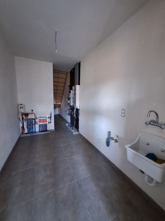 Aanpalend aan de keuken heeft u toegang tot een ruime berging. In deze berging is er een aansluiting voorzien voor de wasmachine. Er is ook een uitgietbak aanwezig.