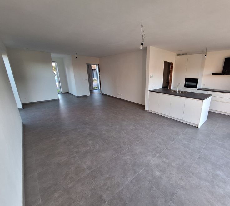 U komt binnen in de lichtrijke, ruime leefruimte. Deels afgeschermd van de leefruimte is er een aparte speelhoek/bureauruimte voorzien.