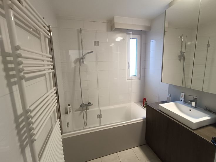 Boven zijn er drie slaapkamers, waarvan één met ingebouwde kast, en een badkamer met veel opbergruimte, een toilet en een bad-douchecombinatie (kraan en glazen wand vernieuwd in 2022). Een aparte berging biedt plaats voor een wasmachine en droogkast.