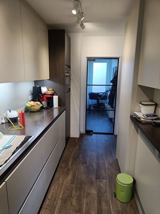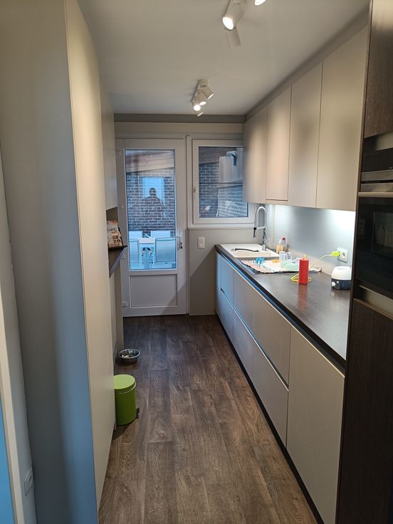 Op het gelijkvloers vind je een ruime garage en een gezellige tuin met overdekt terras. De moderne keuken, gerenoveerd in 2021, is volledig uitgerust met een inductievuur, ingebouwde vaatwasser, diepvries en koelkast. Daarnaast is er ruimte voor een (combi)oven. Verder zijn er een inkomhal met apart toilet (handenwasser vernieuwd in 2022), een praktische berging en een gezellige woonkamer met ingebouwde kast.
