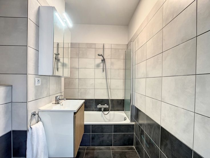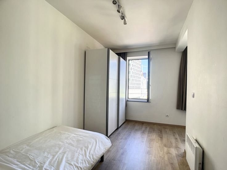 BRUSSEL - Maak een bod vanaf €295.000 (Mits aanvaarding door de eigenaar) Ideaal gelegen in de onmiddellijke nabijheid van alle faciliteiten, G-Home biedt u dit prachtig gemeubeld 2-slaapkamers appartement aan van +/- 80m² woonoppervlak. Het appartement werd in 2012 gebouwd door de beroemde architect Corbiau en is als volgt samengesteld: Inkomhal met vestiaire +/- 6,5m² - Lichte eetkamer/woonkamer +/- 34m² met een prachtig open zicht - Superuitgerust keuken (keramische kookplaten, koelkast, oven, microgolf, dampkap, spoelbak) - 1e slaapkamer +/- 15m² - Badkamer (bad/douche, wastafel, toilet) +/- 4,5m² - 2e slaapkamer +/- 10m². Beveiligde overdekte parkeerplaats inbegrepen in de prijs (waarde € 25.000) - Elektrische verwarming - Conforme elektriciteit - Fotovoltaïsche panelen - Eigenaarskosten +/- € 185/maand. PEB 205 kWh/m2 (D-). Verkoop onder registratierechten. De gegeven informatie en opgegeven oppervlaktes zijn louter indicatief en houden geen enkele juridische verbintenis in. Zeker een bezoek waard! www.g-home.be