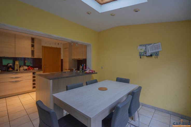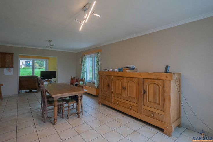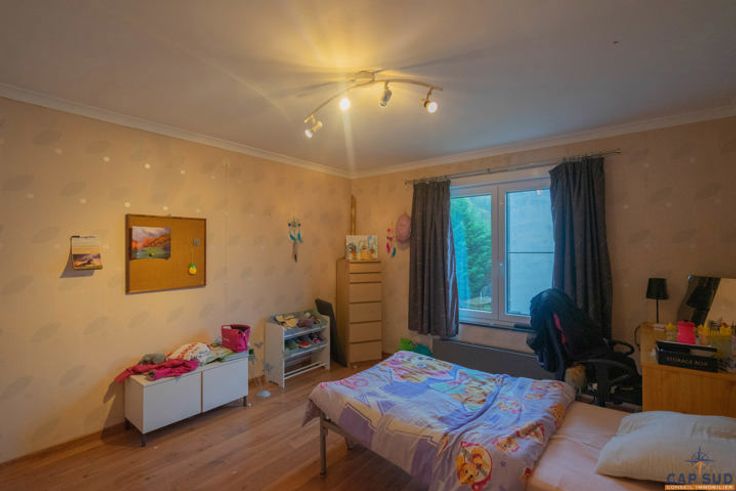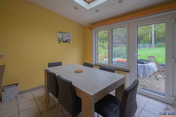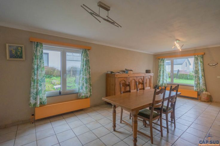 Cap Sud Namur biedt je een op te frissen huis met 3 verdiepingen, gelegen in een rustige wijk van Mettet, dicht bij alle voorzieningen. De benedenverdieping omvat een inkomhal met apart toilet, een eetkamer, een lichte woonkamer en een ingerichte keuken met eethoek. Deze ruimtes komen uit op een terras en tuin van 30 m². Boven vind je een nachthal, een badkamer (bad, douche, wc) en vier ruime slaapkamers. Een zolder voor opslag en een garage van 30 m² met elektrische sectionaaldeur maken dit huis compleet. Qua uitrusting beschikt de woning over 16 fotovoltaïsche panelen, PVC ramen met dubbele beglazing (geïnstalleerd in 2023) en een elektrische boiler voor warm water. Het verwarmingssysteem (vroeger oliegestookt) is niet meer operationeel. Het perceel op het noorden, van 5 are 91 centiares, heeft een kadastraal inkomen van €689, wat de mogelijkheid biedt tot een korting op de registratierechten. Het PEB van het huis is klasse C en is geldig tot 18/10/2034. Prijs: Doe een bod vanaf €230.000, onder voorbehoud van aanvaarding door de eigenaren. Neem voor meer informatie of een bezichtiging contact met ons op via 081/210.810.