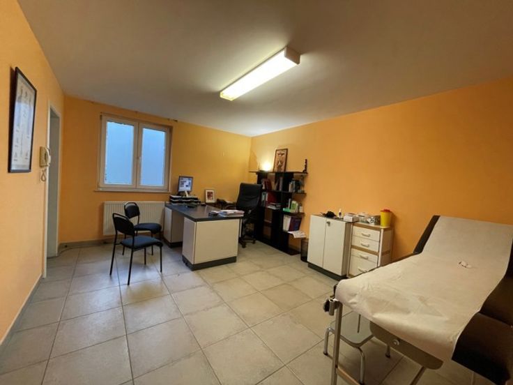 HOUSY vous propose cet espace professionnel idéalement situé sur la Place d'Arquennes, au rez-de-chaussée d'un petit immeuble. Il est doté d'une entrée séparée de l'immeuble avec parlophone. Il comprend un hall d'entrée, une salle d'attente (6 pers.), 2 bureaux/cabinets (19m² et 11m²), un WC et local technique. Il se situe à proximité des grands axes (E19-A54-E42) et juste devant un arrêt de bus. Charges communes : 80€/mois. Possibilité d'en faire un appartement 1 chambre (voir plan d'aménagement et informations en agence). Faire offre à partir de 150.000€. Informations et visites : HOUSY : 067/70.01.70.