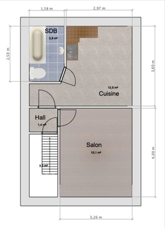 Il vous offre un petit hall d'entrée, un séjour/salon, une cuisine semi-équipée (frigo/congélateur, taque de cuisson au gaz, meubles), une salle d'eau (bain, lavabo, WC), une chambre en mezzanine, une cave en sous-sol. Un emplacement de parking extérieur est disponible en supplément (25 €/mois).