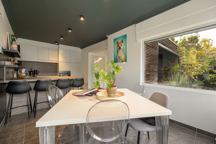 In 2013 werd de woning grondig gerenoveerd en in 2016 uitgebreid met oog op een vloeiende connectie tussen binnen en buiten. Vanuit de gezellige zithoek, voorzien van een sfeervolle gashaard, geniet je van een prachtig zicht op de tuin, die zich naadloos aansluit op de leefruimte.