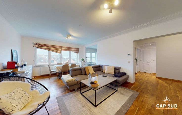Cap Sud vous propose ce lumineux appartement 1 chambre. L'appartement fait environ 60m² et se compose comme suit : un hall d’entrée avec wc et lave main, un très lumineux séjour et cuisine ouverte super équipée (lave-vaisselle, taques, four, frigo, congélateur,...), une grande chambre, une salle de bain double vasque, bain et douche.