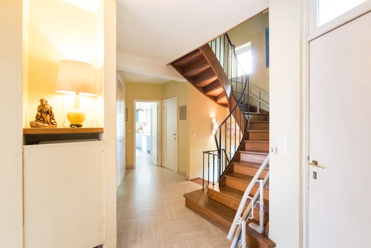 WOLUWE-SAINT-PIERRE, in de gewilde wijk Chant d'Oiseau, ruime VILLA (7bed/2bathroom/kantoor) van +/- 411m² bebouwde oppervlakte, waarvan 305m² bewoonbaar, op 5 are grond op het zuidwesten. De begane grond bestaat uit een inkomhal met vestiaire en gastentoilet, ruime en lichte woonkamer met open haard, bureau en eetkamer met toegang tot het terras en de tuin, ingerichte keuken met ontbijthoek. De eerste verdieping biedt 4 mooie slaapkamers (23m², 16m², 16m², 11m²), 2 douchekamers, een apart toilet en een wasruimte. De tweede verdieping biedt nog eens 3 slaapkamers en 2 zolders, waarvan er een kan worden omgebouwd tot doucheruimte. De kelder herbergt een opslagkelder, een wasruimte, een stookruimte, een grote ruimte die gebruikt zou kunnen worden voor professionele doeleinden met onafhankelijke toegang en een grote garage voor 2 auto's. Een uitzonderlijke locatie naast het Woluwepark en dicht bij verschillende voorzieningen (tram, Chant d'oiseaux winkels). Ketel op stookolie. EPC G: 578 kWh/m²/jaar. RU aan de gang. Een uitzonderlijke woning om te ontdekken met Latour Petit! Vidéo: https://youtu.be/OQ4_ZwKkVGU