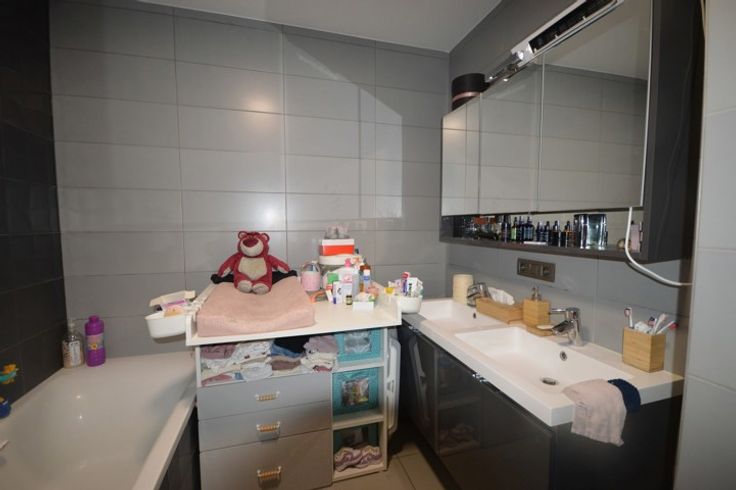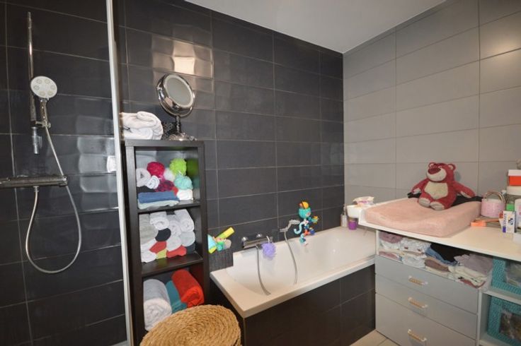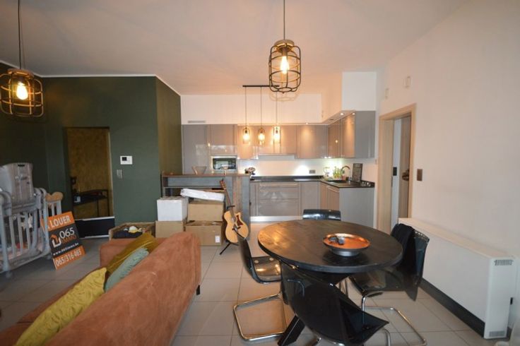 Appartement de standing situé au premier étage avec ascenseur dans une très jolie copropriété avec jardin privatif aux occupants de l'immeuble, localisé dans le centre de Saint Ghislain à proximité de diverses commodités, transport en commun (bus et train), appartement très lumineux composé d'un hall d'entrée, séjour avec cuisine super équipée ouverte, 2 chambres, salle de bain et douche, buanderie, wc séparé, terrasse, emplacement de parking couvert. Compteurs individuel, chauffage électrique, ventilation double flux, l'appartement sera remis en blanc. - LOYER 840€ + 120€ de provision les charges communes - LIBRE