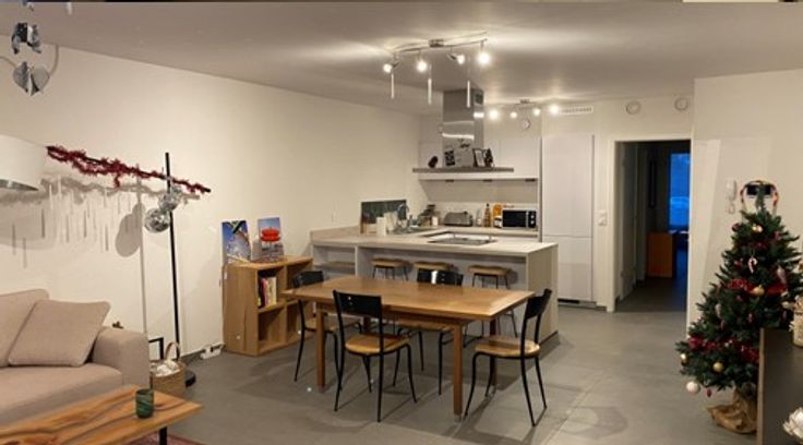 Finitions de premier choix : châssis triple vitrage, ventilation double flux individuelle, chauffage par le sol, chaudière individuelle au gaz à condensation, cuisine full équipée de qualité avec appareils Siemens, luminaires LED inclus, isolation thermique élevée, PEB A, ascenseur, etc.