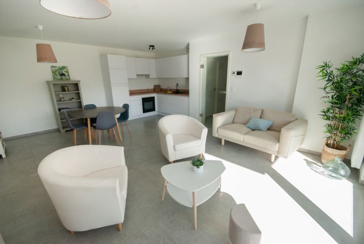 Rust en stilte in het hart van Libramont Heeft u een vraag? Een bezoekje? Onze adviseurs zijn op afspraak bereikbaar op 085/25.34.93. Prologe biedt u dit nieuwe 2-slaapkamer appartement aan met een oppervlakte van 86m². Gelegen op de begane grond van een residentie met eigentijdse architectuur, is het als volgt samengesteld: een inkomhal, een ingerichte keuken die uitgeeft op een ruime woonkamer, een doucheruimte, een wasruimte, een nachthal, een onafhankelijk toilet en 2 slaapkamers. Het heeft ook een terras, toegankelijk vanuit de woonkamers. UW VOORDELEN - Uitrusting van topkwaliteit, uitstekende energieprestaties en een zeer goede thermische en akoestische isolatie, zodat uw woning zowel aangenaam als energiezuinig is. - Deze residentie heeft overdekte parkeerplaatsen en kelders. - Gemoedsrust, u betaalt pas als u de sleutels krijgt. - Het hypercentrum van Libramont, de voorzieningen en het station liggen op slechts enkele minuten lopen. Interesse? Laten we een bezoek regelen!