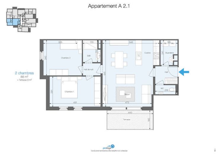 Rust en stilte in het hart van Libramont Heeft u een vraag? Een bezoekje? Onze adviseurs zijn op afspraak bereikbaar op 085/25.34.93. Prologe biedt u dit nieuwe 2-slaapkamer appartement aan met een oppervlakte van 88m². Gelegen op de tweede verdieping van een residentie met hedendaagse architectuur, is het als volgt samengesteld: een inkomhal, een ingerichte keuken die uitgeeft op een ruime woonkamer, een douchekamer, een wasruimte, een onafhankelijk toilet, een nachthal en 2 slaapkamers. Het heeft ook een terras, toegankelijk vanuit de woonkamers. UW VOORDELEN - Uitrusting van topkwaliteit, uitstekende energieprestaties en een zeer goede thermische en akoestische isolatie, zodat uw woning zowel aangenaam als energiezuinig is. - Deze residentie heeft overdekte parkeerplaatsen en kelders. - Gemoedsrust, u betaalt pas als u de sleutels krijgt. - Het hypercentrum van Libramont, de voorzieningen en het station liggen op slechts enkele minuten lopen. Interesse? Laten we een bezoek regelen!
