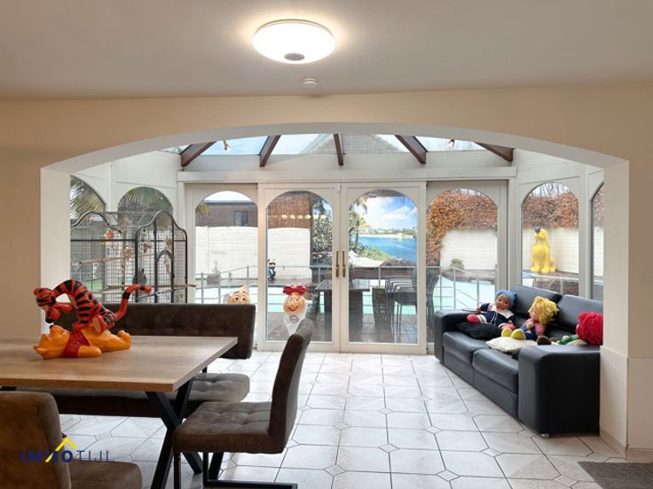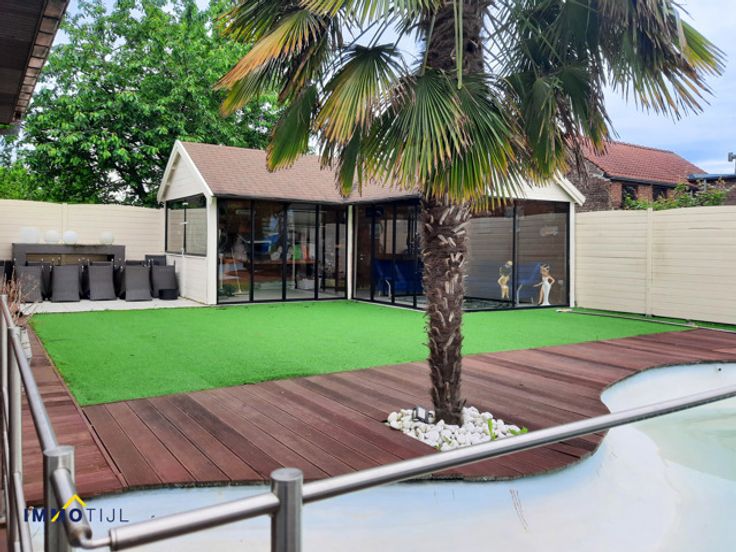 Deze villa biedt op het gelijkvloers een inkomhal met ingebouwde vestaire en gastentoilet, een lichtrijke ruime woonkamer en een ingerichte keuken die grenst aan een handige berging/wasruimte met een achterdeur naar de tuin. Daarnaast zijn er nog 3 (slaap)kamers en een eerste badkamer beschikbaar (bad, douche en lavabomeubel). Verder beschikt het gelijkvloers nog over een dubbele garage met elektrische poort. Zowel de keuken als de woonkamer geven uit op het overdekt terras met prachtig zwembad, poolhouse en jacuzzi. Op de eerste verdieping bevindt zich een volledig tweede woonentiteit deze omvat, 2 slaapkamers waarvan één met dressing, een badkamer (bubbelbad, douche, dubbel lavabomeubel en toilet). Een ruime leefruimte met open keuken en een bureauhoek. Verder is er nog een tuime berging/wasruimte, apart gastentoilet en cv ruimte. De woning is voorzien van driedubbele beglazing, centrale verwarming, zonnepanelen, gunstig EPC, zwembad, poolhouse ... Kortom deze unieke en ruime villa biedt veel mogelijkheden en is ideaal voor wie waarde hecht aan rust, ruimte en exclusiviteit. Neem alvast een kijkje binnenin via onze virtuele rondleiding! Rustig en centraal gelegen te Burst doch op korte afstand van zowel Erpe-mere als Aalst. Voor meer info en/of een bezoek, contacteer ons via niels@immotijl.be of 0474 12 56 41.