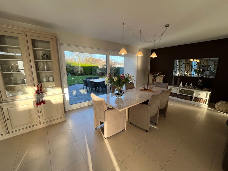 Rez : grande entrée lumineuse suivi d’un agréable salon avec feu ouvert, salle à manger, cuisine full équipée donnant sur une magnifique vue sur le jardin.