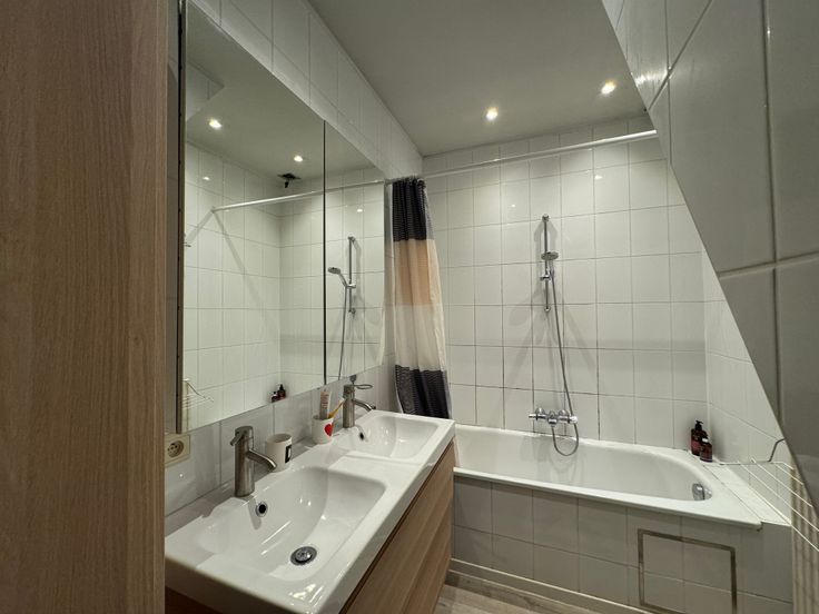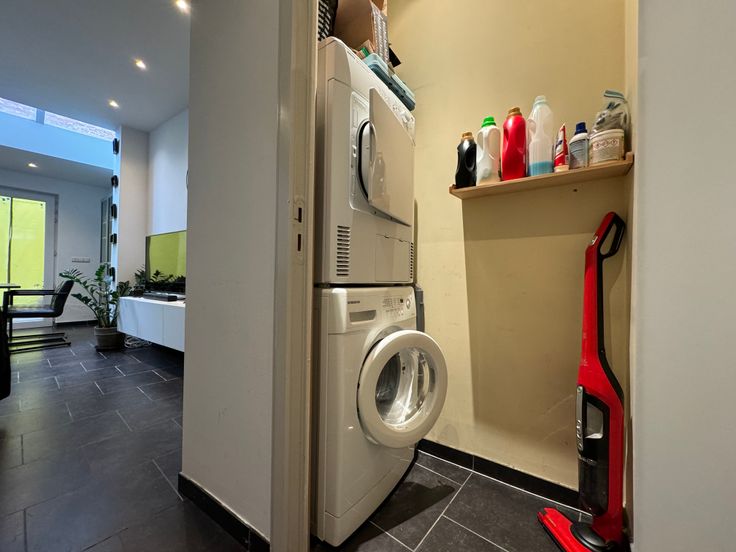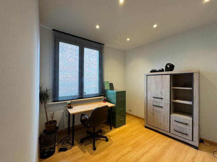 Op de eerste verdieping zijn er twee kamers waarvan we een als bureau en een als slaapkamer gebruiken. Daarnaast is er een ruime badkamer met douchebad, dubbele lavabo en toilet. Op de tweede verdieping bevinden zich nog twee slaapkamers waarvan een momenteel wordt gebruikt als kleerkast (mogelijkheid om dressing te maken) en een als logeerkamer. Tot slot is er ook een fijne stadskoer waar je in alle rust en privacy kan genieten als de zon schijnt.