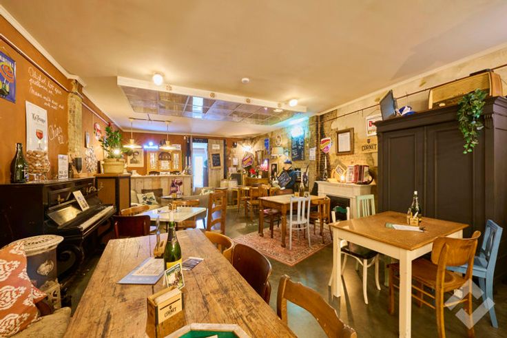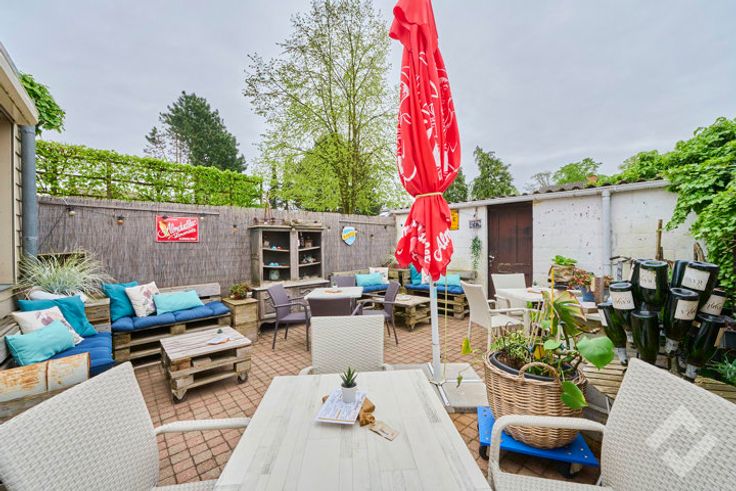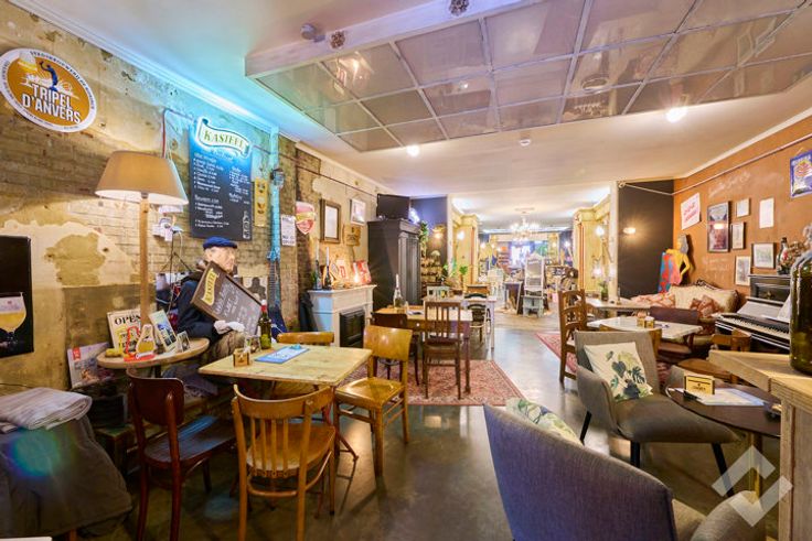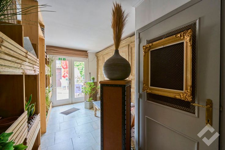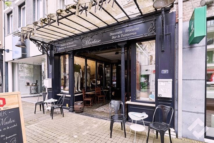 De uitspringende gevel trekt de aandacht dankzij het sierlijke afdak en grote vitrine, gevolgd door de smeedijzeren deur waarmee we de handelsruimte betreden. Binnen heeft het pand een eigenzinnige uitstraling en een open indeling, die het mogelijk maakt het pand in te vullen op vele manieren. Bij de afwerking werden verschillende materialen gebruikt zoals mozaïek, natuursteen, hout, edm.. die het zijn eigen stijl geeft en op zijn minst in het oog springt. Achteraan is er naast een kitchenette en de toilet nog een doorgang naar de zonovergoten koer waar het aangenaam vertoeven is. Het pand ligt op een drukke doorgaande weg waar er langs weerszijden parkeergelegenheid is en op wandelafstand nog meer parkeermogelijkheden biedt.