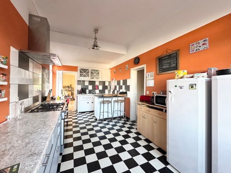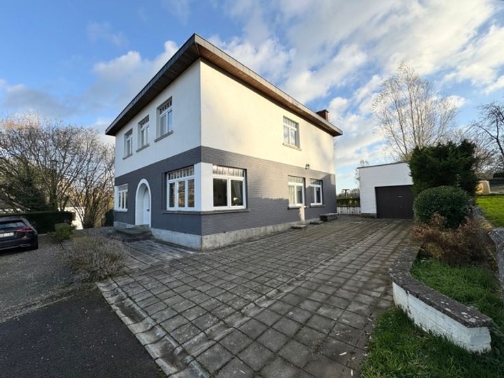 Sur un beau terrain de +/- 16 ares arboré et entretenu avec belle vue sur la campagne, cette vaste demeure a du style et en impose avec ses 320 m2 utiles. Un grand parking avant, lui donne un très beau recul par rapport à la voirie et un bel espace de pacquage rare (5 voitures). Un beau hall central ouvre sur un grand séjour / salle de réunion, ainsi que sur une grande cuisine semi-équipée avec espace de rangement. Bureau 1 coté jardin. Au premier niveau, cinq beaux espaces et deux SDD, (possibilité de joindre deux espaces bureau en vue d'un plus vaste. Au dernier niveau, sous toiture, deux beaux bureaux ou un seul grand. Grandes caves sous la maison pour le stockage. Terrasse et grand garage annexe. Rénovée en 2014 (toiture, chassis DV, salles d'eau, circuit électrique conforme, cuisine, etc.).