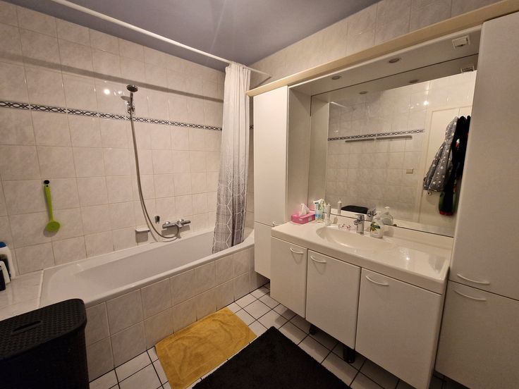 Dit appartement is gelegen op de eerste verdieping, en omvat een mooie open keuken en gezellige woonkamer (40m²), een badkamer met bad (6m²), apart toilet, en 2 slaapkamers (16m² & 10m²).