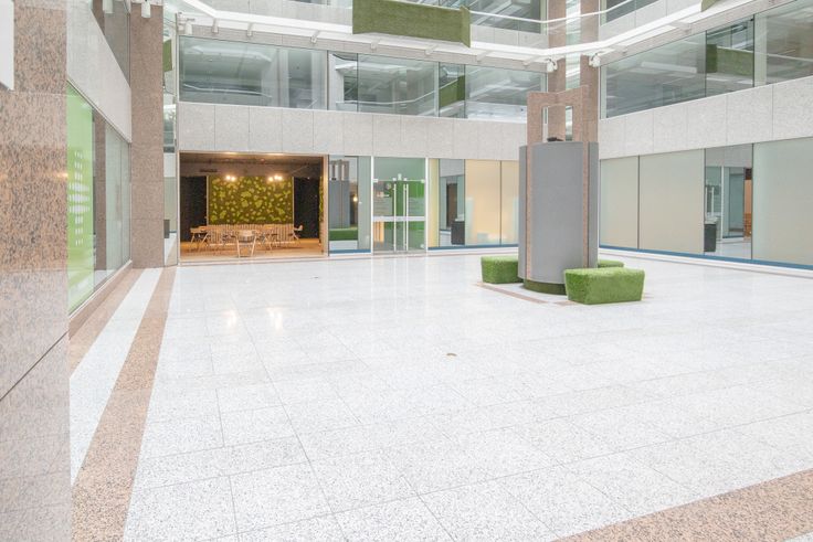 Op het gelijkvloers, bevinden deze lichtrijke kantoren en privaat atrium (2.064 m²) zich rondom één ander atrium en hebben privatief sanitair.