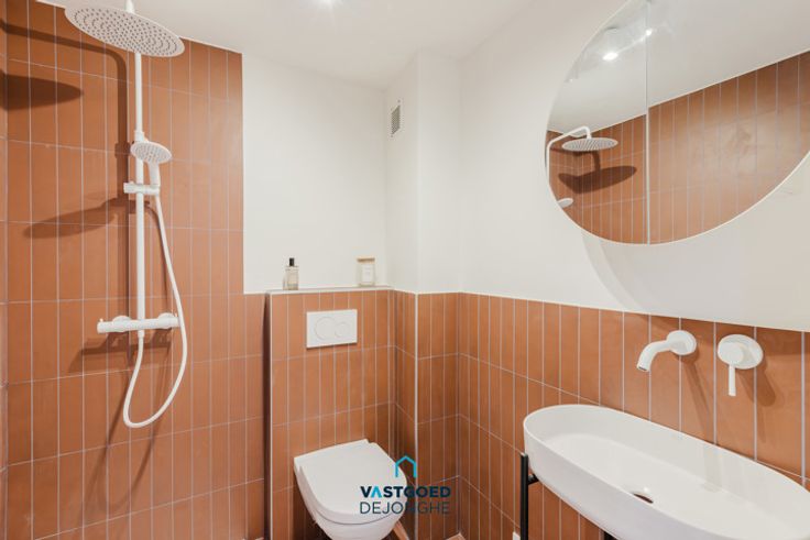Opportuniteit voor studerende kinderen – starters – slimme investeerders. Op de as UZ - Gent-Sint-Pieters - Ledeganck bevindt zich dit kleinschalig, future proof appartementsgebouw met slechts 2 entiteiten. Het gebouw werd zonet opgefrist en voorzien van nieuwe technieken zoals warmtepompen, zonnepanelen en nieuwe isolatie (vloer – muur – plafonds – dak). Het gebouw beschikt tevens over een brandcentrale met geautomatiseerd ontrokingsluik, vaste rookmelders, noodknoppen en noodverlichting. Het gebouw is vrijgesteld van de syndicusverplichting en de bijhorende kost. Het eerste appartment situeert zich op het gelijkvloers. Via de brandwerende voordeur betreedt men de lichtrijke leefkeuken waar plaats is voor salon en eettafel. De keuken werd uitgerust met toestellen van Whirlpool. Het leefgedeelte wordt gescheiden van het slaapgedeelte door de functionele badkamer met inloopdouche (scherm in bestelling), Villeroy&Boch hangtoilet en design wasmeubel. Er werd bijzonder veel aandacht besteed aan de keuze van de materialen, zoals mat witte inbouwkranen en tegels uit Portugal afgewerkt met blauwe voeg die rondomrond de badkamer doorlopen. In het slaapgedeelte is plaats voor een dubbel bed, kast en bureau. De aangename, waterdoorlaatbare buitenruimte werd voorzien van ondehoudsvriendelijke beplanting die in alle seizoenen sfeer brengt. De warmtepomp doet dienst als verwarming, airco, ventilatie en luchtdroger en kan eenvoudig vanop afstand bediend worden via smartphone of tablet.