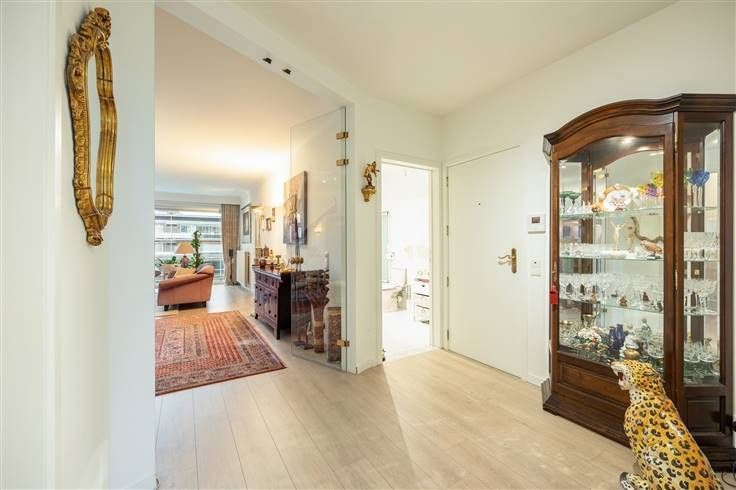 In een verzorgd appartementsgebouw in een gegeerde buurt in Deurne-Zuid, stap je op de vijfde verdieping de lichte en ruime inkomhal binnen. Je hebt hier een apart gastentoilet en walk-in dressing/vestiaire. De laminaatparket loopt door naar de riante leefruimte toe. Door de dubbele glazen deur zie je al meteen hoeveel licht er hier binnenvalt, dankzij de kamerbrede ramen. Je hebt hier ook nog dimbare lichten, stores, sierlijsten, een gashaard én toegang tot een eerste terrasje vooraan. De aanpalende L-vormige witte keuken is volledig betegeld, met plaats voor nog een keukentafel. Je hebt hier een elektrisch vuur, dampkap, dubbele spoelbak, oven, vaatwasser en een aparte berging. Weer in de hal, heb je nog een nette badkamer op een witte tegel, met een lichtroze ligbad met douchescherm, breed, strak lavabomeubel met spiegel, verlichting en een toilet. De twee ruime slaapkamers bevinden zich achteraan, beide op laminaat. De brede schuiframen van beide kamers geven bovendien uit op een tweede terras met een tegelvloer. Je woont hier in een gegeerde buurt van Deurne-Zuid, pàl tussen maar liefst drie parken: het grote, groene Rivierenhof, het gezellige Te Boelaerpark en het Boekenbergpark met z’n openlucht zwemvijver. Het gekende café Exter ligt op amper twee minuutjes fietsen, en ook voor je dagdagelijkse boodschappen of andere toffe horecazaken hoef je hier nooit ver. Meer info: https://www.immovasta.be/panden/gegevens/13612/