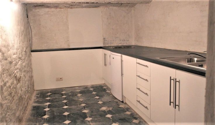 Indeling: grote ruimte, 4 kleine ruimtes (16,5m²), 2 toiletten, kitchenette met toestellen, kelder en berging