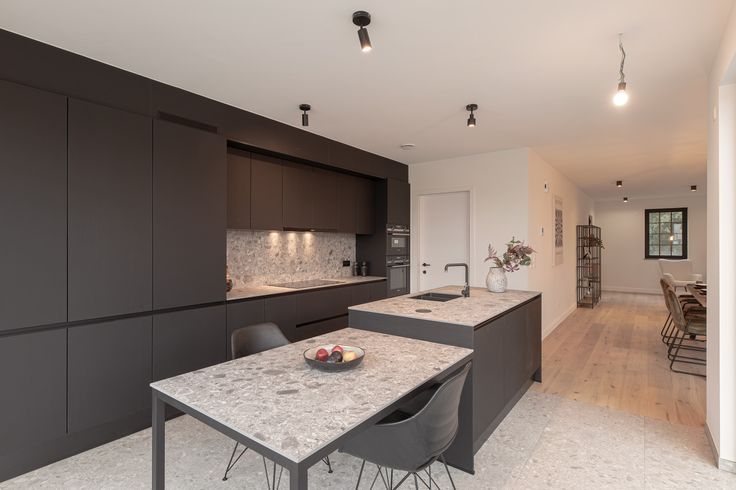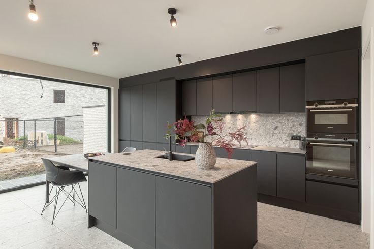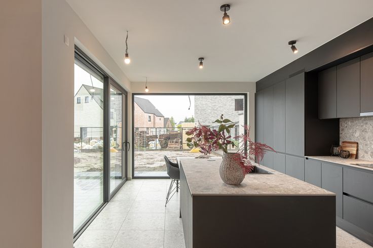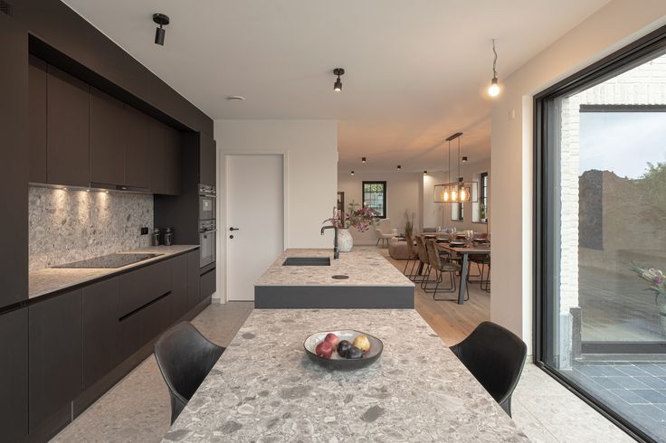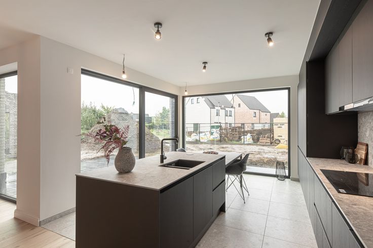 De leefkeuken is voorzien van grote raampartijen die directe toegang geven tot het aangelegde terras en de tuin.