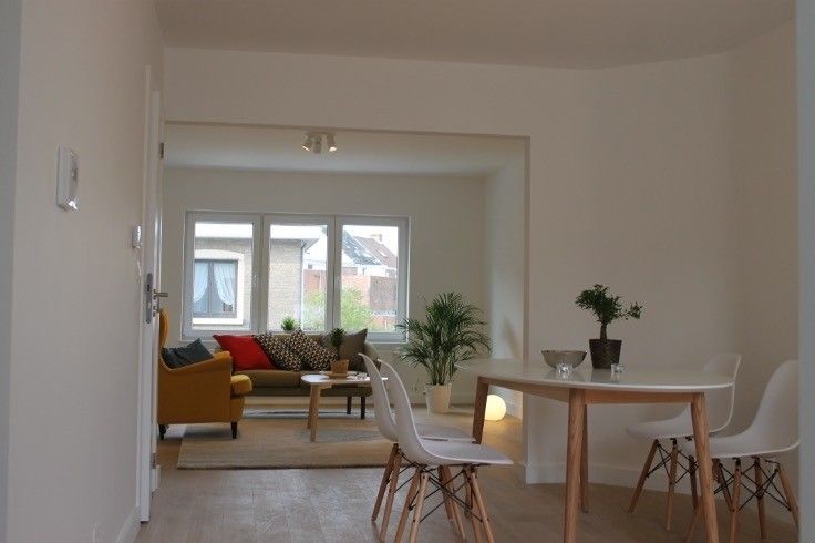 Uitstekend gelegen triplex-appartement in het centrum van Sint-Niklaas, nabij openbaar vervoer, scholen en winkels.  Zowel de Grote Markt, de supermarkten en het Station liggen op wandelafstand.  Het appartement met een bewoonbare oppervlakte van ca. 100 m² (exclusief terras) bevindt zich in een kleinschalige residentie die een totaalrenovatie onderging in 2016.   De indeling van het appartement bestaat uit een lichtrijke leefruimte op parket, een strakke witte keuken (voorzien van alle toestellen) en een aparte berging/wasplaats en toilet.  Vanuit de woonkamer en keuken kijk je uit op het gezellig terras.  Op de verdieping bevinden zich 2 ruime slaapkamers en een hedendaagse badkamer met (dubbele lavabo en douche).  Via een vaste trap in de tweede slaapkamer bereik je de derde, ruime slaapkamer.  Extra troeven: Er is geen lift aanwezig, wat resulteert in lage gemeenschappelijke kosten.  Gemeenschappelijke fietsenberging aanwezig. Momenteel wordt het appartement verhuurd aan 850 €/maand, dus interessant voor investeerders. Interesse? Bel voor info of een bezoek naar 0476/63.84.03 of mail naar lena@claves.be. Renovatieplicht: nee