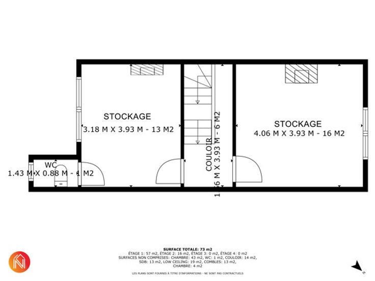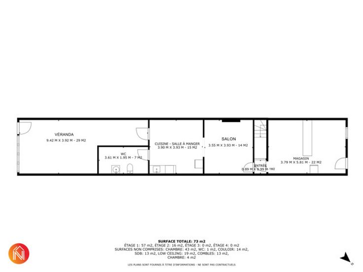 À l'étage, vous trouverez un espace supplémentaire pour le stockage ainsi qu'une pièce avec sanitaires.L'immeuble peut également être utilisé comme bureaux ou une restauration.