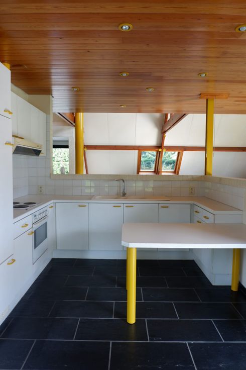 - Er is een halfopen keuken die uitgeeft enerzijds op een ruimte bestemd als
