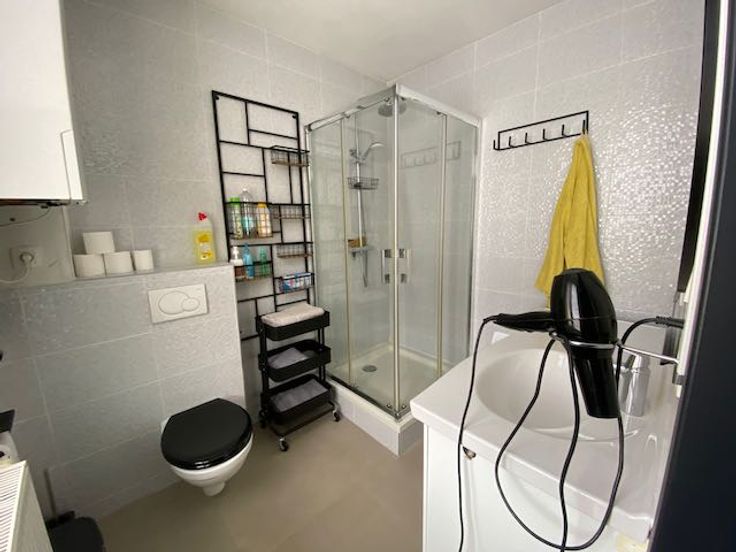 Er is een kleine droge kelder. Op de eerste verdieping vinden we een ruime slaapkamer en een badkamer met douche ,toilet, lavabo en wasmachine. Op het bovenste verdiep bevind zich de 2de slaapkamer met een eigen badkamer voorzien van ligbad en toilet. De woning wordt momenteel verhuurd in co-housing en heeft een mooi rendement. Wordt bemeubeld en volledig uitgerust verkocht. De opengewerkte woonkamer is voorzien van een gietijzeren houtkachel. Aansluitend vindt u een kleine TV-hoek, die uitkijkt op een knusse, zonnige koer. Deze energiezuinige woning biedt comfort en een uitstekende, rustige ligging – een ideale keuze voor wie een gezellige thuis zoekt in het bruisende centrum van Mechelen. Geen IMMO