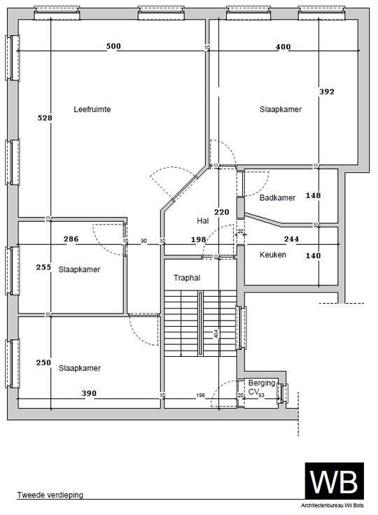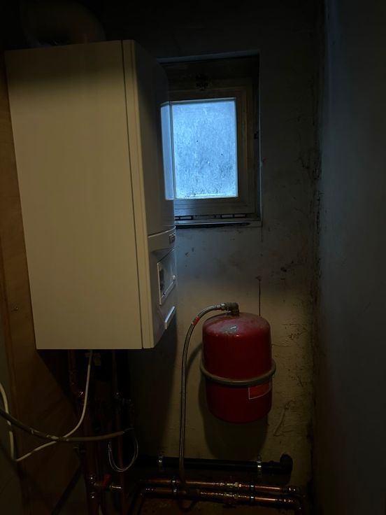 Aparte ruimte in trapzaal voor ketel.