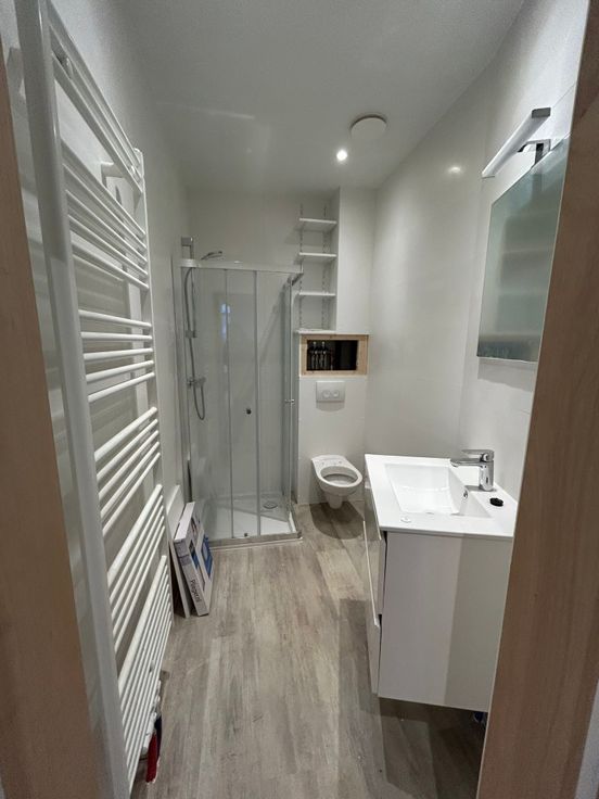 Overloop + appartement: inkomhal, living, keuken, 3 slaapkamers, badkamer (douche,wc,lavabo) opp.: +/-95 m2