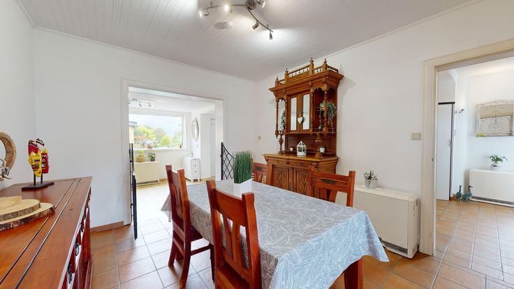 OPTION - Visites suspendues - Idéalement située dans un quartier à vocation exclusivement résidentielle, à deux pas de la gare et des commerces, excellente maison d'habitation non attenante, en parfait état d'entretien et sise sur un magnifique terrain de plus de 9 ares orienté Sud-Est arrière. Au rez-de chaussée : hall d'entrée avec vestiaire, wc séparé, séjour avec insert à bois, cuisine super équipée prolongée d'un espace repas avec poêle à pellets et accès à la terrasse, buanderie. Aux étages : hall de nuit, 3 chambres, salle d'eau récente avec douche italienne, lavabo et toilette. Au sous-sol : une cave. Dépendances : grand abri de jardin, pergola, et serre. Extérieurs : terrasse arrière, jardin orienté Sud-Est arrière, espace potager, pièce d'eau et parking 2vt en façade avant. Techniques : châssis pvc double vitrage, toiture récente (2019), chauffage central par convecteur électriques + insert bois + poêle à pellets, compteurs électriques bi-horaire et exclusif nuit, installation électrique conforme. Bien libre à partir du 1er mars 2025.