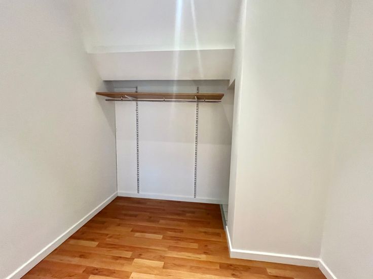 La chambre mezzanine dispose d'un dressing et d'une salle de douche avec un sèche serviette, plusieurs rangements et une seconde toilette.