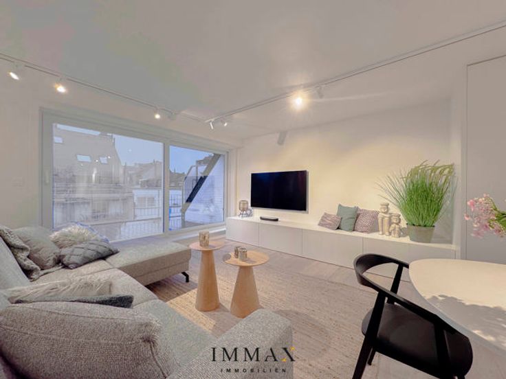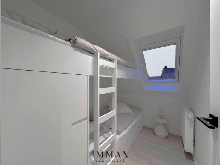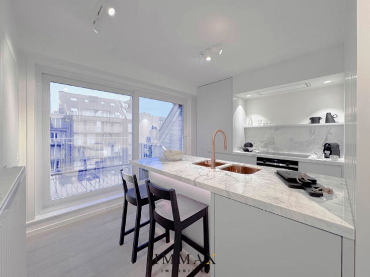 Prachtig, gerenoveerde duplex penthouse met schitterende terrassen vlakbij de winkelstraten én het strand. Indeling: inkomhall met gastentoilet. Moderne, volledig geïnstalleerde open keuken die uitgeeft op het ruime terras achteraan.  Lichtrijke, royale woonkamer uitgevend op een ruim westgericht zonneterras. Het appartement werd voorzien van 3 slaapkamers.  Masterbedroom met ensuite badkamer. 2de ruime slaapkamer voor tweepersoonsbed. 3de slaapkamer voorzien van geïntegreerd stapelbed.  Een tweede extra douchekamer is voorhanden voor extra comfort.  Alle slaapkamers werden tevens voorzien van ingemaakte kasten.  Ervaar de schoonheid en klasse die het appartement uitstraalt! Mogelijkheid tot aankoop van een autostaanplaats/garagebox in de nabije omgeving!  Aarzel niet om ons te contacteren voor meer informatie: tel.: 050 62 44 14 of via knokke@immax.be