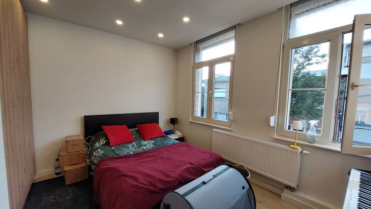 Op de eerste verdieping bevindt zich de master bedroom en een 2de slaapkamer. Op de 2de verdieping bevindt zich de volledig afgewerkte zolder die eveneens kan dienen als slaapkamer.
