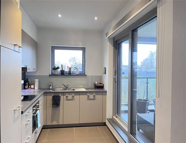 Ruim appartement op de eerste verdieping gelegen te Hombeek met 2 slaapkamers Via de inkomhal betreden we de living met open ingerichte keuken, waarnaast er zich nog een ruime berging bevind. Verder hebben we de badkamer met douche, ligbad en een dubbel lavabo. Via de inkomhal bereiken we ook de 2 ruime slaapkamers. Het gezellige terras, de ondergrondse parking en de kelder maken dit appartement compleet.