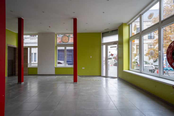 DISPONIBLE IMMEDIATEMENT - Au rez-de-chaussée d'un immeuble entièrement restauré, nous proposons une spacieuse surface commerciale située sur la Place de Jemappes.Excellente visibilité (possibilité d''installer une enseigne) et facilités de parking (gratuit). Idéal pour une activité commerciale de type HORECA ou bureaux. Il y a +/- 100 m2 de surfaces exploitables, deux entrées principales et une entrée de service, une cuisine, des toilettes séparées et une cour couverte pour du stockage. Les compteurs sont séparés (eau, gaz, électricité), chauffage et climatisation via pompe à chaleur, châssis double vitrage PVC. Loyer de 1400 euros/mois + deux mois de caution. Publication et superficies à caractère non contractuel.
