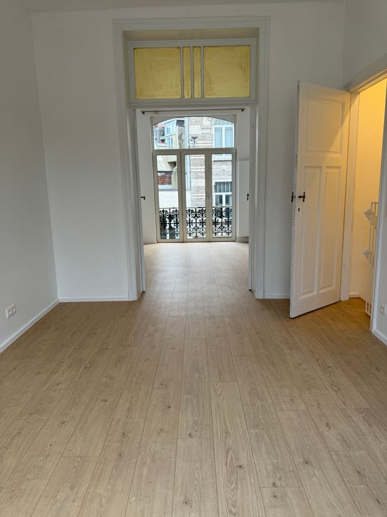 Dans une rue calme à sens unique, duplex lumineux (1er et 2e étages), entièrement rénové, salon, salle à manger avec cuisine ouverte hyper-équipée (cuisinière à gaz, four, four micro-onde, frigo/congélateur, lave-vaisselle, îlot central, deux chambres en enfilade, salle de douche avec wc et lave-linge.