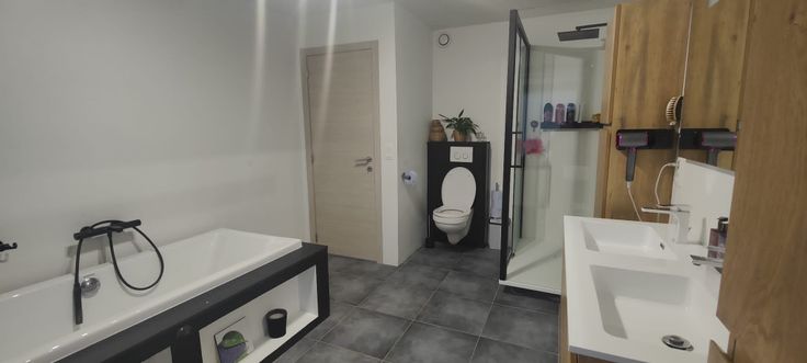 Belle maison Spacieuse, 5 chambres + dressing, panneaux solaire, VMC double flux, SDB ( douche et baignoire ), 2 wc, salon, salle à manger, cuisine entièrement équipée, garage + emplacement voiture , grande terrasse avec espace jaccusi et grand jardin se situe proche de grande surface et arrêt de bus